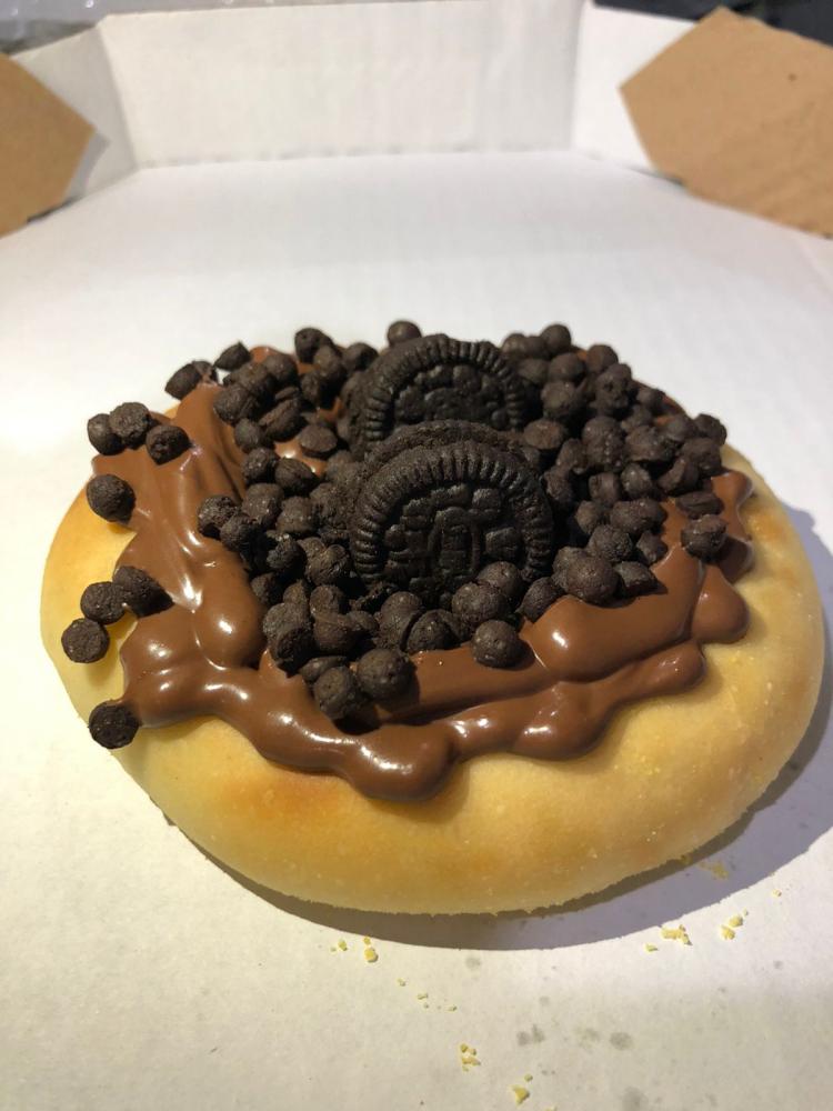 CHOCOLATE AO LEITE , FLOCO DE OREO E BISCOITO OREO.